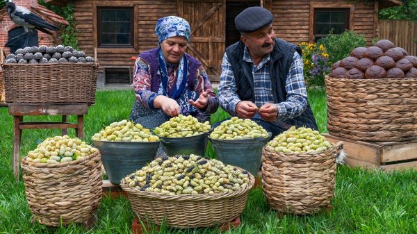آشپزی روستایی آذربایجان جدید خانم فرناز - آشپزی در طبیعت آذربایجان : شیره توت سفید