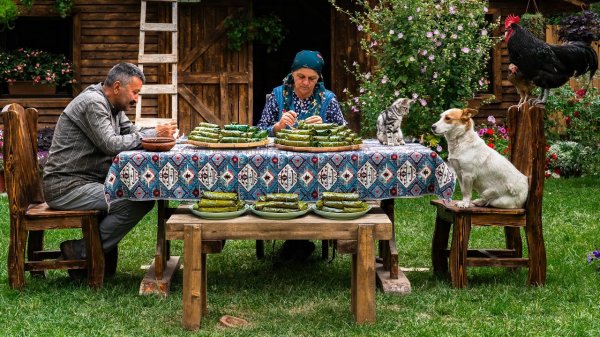 آشپزی در طبیعت آذربایجان خانم فرناز درست کردن دلمه برگ مو در دل طبیعت