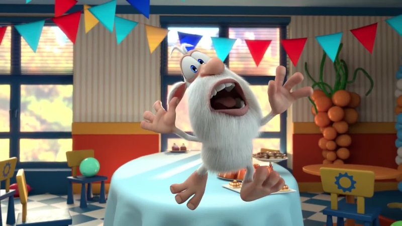بوبا قبل از همه به یک جشن تولد می آید و تصمیم می گیرد یک مهمانی را به تنهایی شروع کند کادوها سوت ها را باز می کند و با بادکنک بازی می کند.