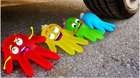 خرد کردن اشیا با ماشین - وسایل و خوراکی های کیوت در برابر چرخ ماشین