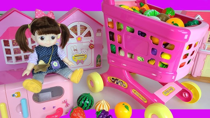 عروسک بازی دختر کوچولو قسمت جدید : چرخ دستی صورتی و خرید از میوه فروشی