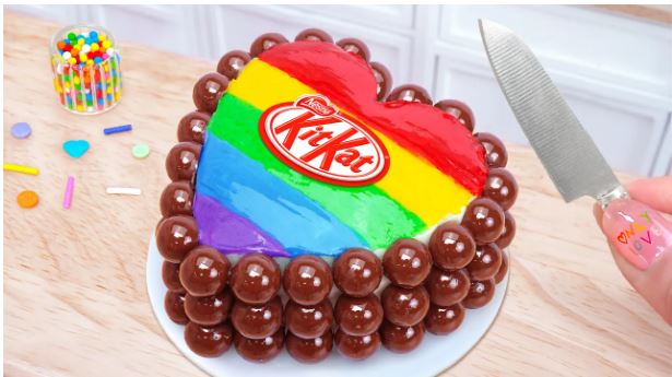 کیک رنگین کمانی با شکلات کیت کت و ...