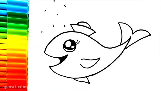 آموزش نقاشی حیوانات برای کودکان _ نقاشی زیبای دلفین با رنگ آمیزی