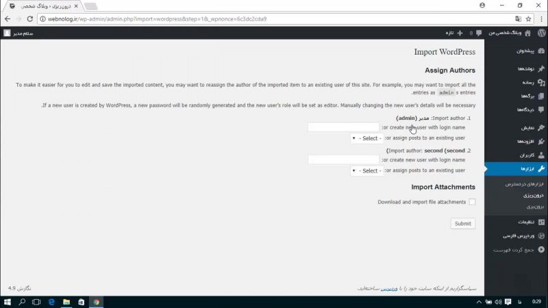 در مقابل برون بری درون ریزی وجود دارد که معادل همان Import می باشد. برای وارد کردن اطلاعات از قبل خروجی گرفته شده به سایت باید از این قابلیت استفاده کنیم.