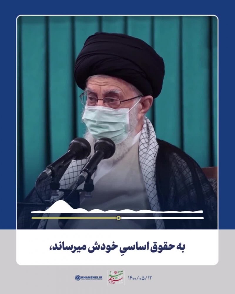 حضرت آیتالله خامنهای: خوشبختانه در بیانات رئیسجمهور محترم جناب آقای رئیسی در تبلیغات انتخابات و غیره تکیه بر روی ارزشهای اساسی انقلاب مکرر انجام گرفت -ایشان بر ارزش عدالت مبارزهی با فساد و امثال اینها تکیه کردند- این مسیر درستی است توصیهی موکد ما این است که همین مسیر را دنبال کنند که خب حالا هم در بیاناتشان بر روی این [ارزشها] تاکید کردند. آن مسیری که کشور را ملت را به حقوق اساسی خودش میرساند کشور را در جایگاه اساسی خود قرار میدهد همین تمسک به ارزشهای اساسی انقلاب است. این ارزشها هم چیزهای ندانسته و موهومی نیست در بیانات امام که ملاحظه کنید [میبینید] کاملا واضح و روشن و جزو بینات فرمایشات امام (رضوان الله علیه) است اینها را باید ملاک قرار بدهند و دنبال بکنند. و نفس پیگیری این اهداف موجب این میشود که مردم هم همت کنند و وارد میدان بشوند و مسائل را دنبال کنند. 1400/5/12