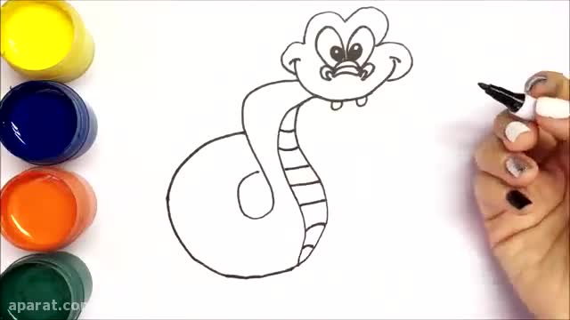 آموزش نقاشی مار کودکانه _ نقاشی زیبای حیوانات