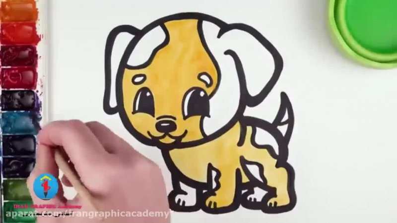 آموزش نقاشی کودکانه #نقاشی با آبرنگ #نقاشی سگ گوچولو ناز