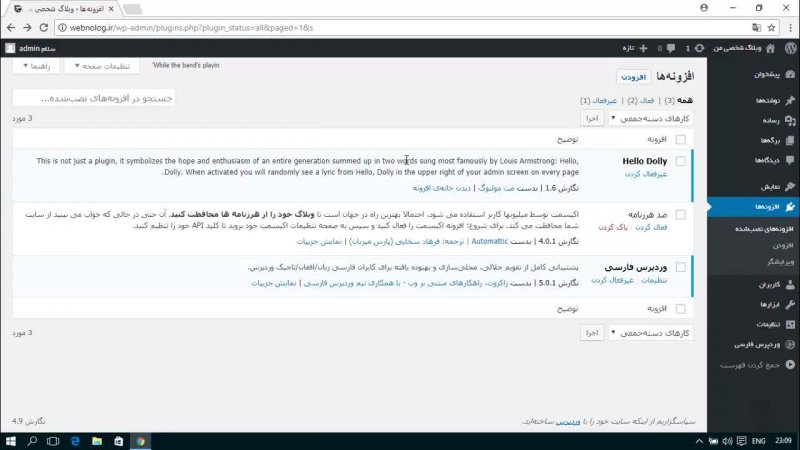 افزونه ها برای افزایش امکانات سایت در اختیار ما هستد. از بخش افزونه ها می توانیم این قابلیت های سایت مان را به صورت کامل کنترل کنیم.