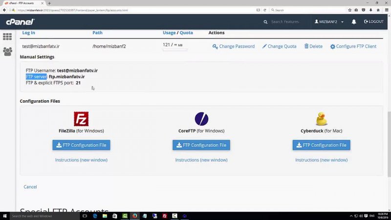 تو این ویدئو آموزشی تصمیم داریم نحوه اتصال اکانت ftp سی پنل به نرم افزار coreftp رو به شما آموزش بدیم.https://mizbanfa.net/blog/hosting/cpanel/how-to-connect-coreftp-to-cpanel-ftp-account/
