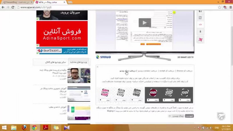 در این مرحله به طریقه وارد کردن ویدیو به نوشته در پرشین بلاگ می رسیم. برای این کار از ابزاری به همین نام در بالای نوار ابزار استفاده می کنیم که کافی است نشانی ویدیو را در آن وارد کرده و روی دکمه درج کلیک کنیم. البته گزینه های دیگری هم وجود دارند که بهتر است با این ویدیو هم همراه باشید.