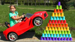 بازی سوفیا با فنجان های رنگی در پارک و ماشین های کودکان | فیلم های خنده دار برای بچه ها