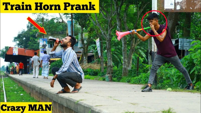 دوربین مخفی خنده دار با ترساندن بوق قطار