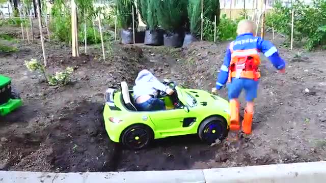 برنامه کودک نیکیتا سوار ماشین کودکان شد و در یدک کش های تراکتور در زمین گیر کرد