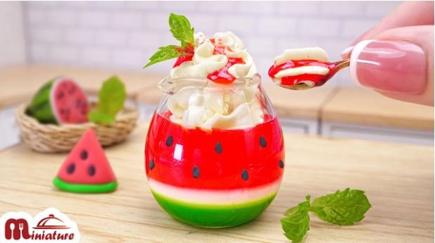فیلم آشپزی مینیاتوری با وسایل کوچک واقعی - پودینگ هندوانه