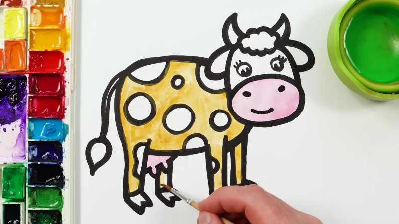 آموزش نقاشی کودکانه _ نقاشی گاو برای کودکان
