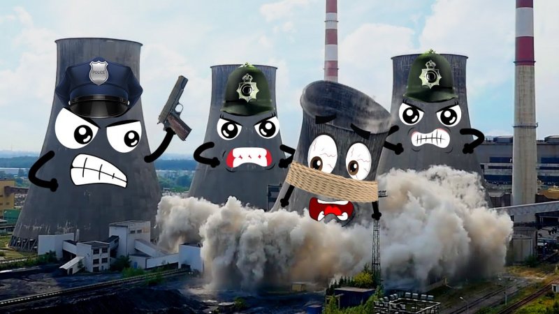 کلیپ کارتونی و بامزه از عملیات تخریب برج های خنک کننده + له شدن وسایل کیوت زیر چرخ ماشین