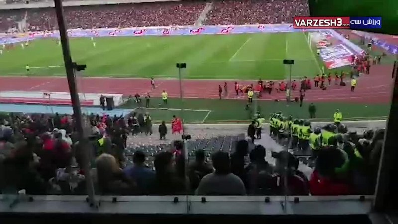 درگیری و پرتاب سنگبین هواداران پرسپولیس و تراکتور در دقایق پایانی که با دخالت نیروی های یگان ویژه همراه شد.