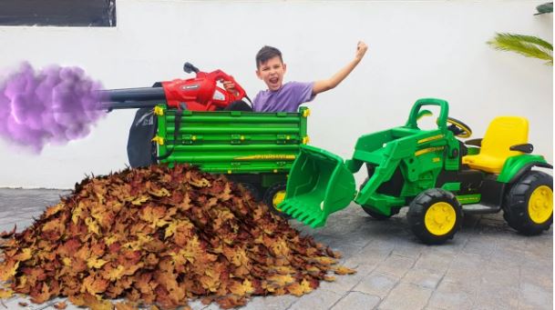 ماشین تراکتور و جمع آوری و حمل برگ های پاییزی