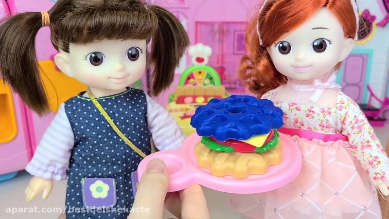 عروسک بچه بازی آشپزی و اسباب بازی های وافل ساز بازی داستان خانه