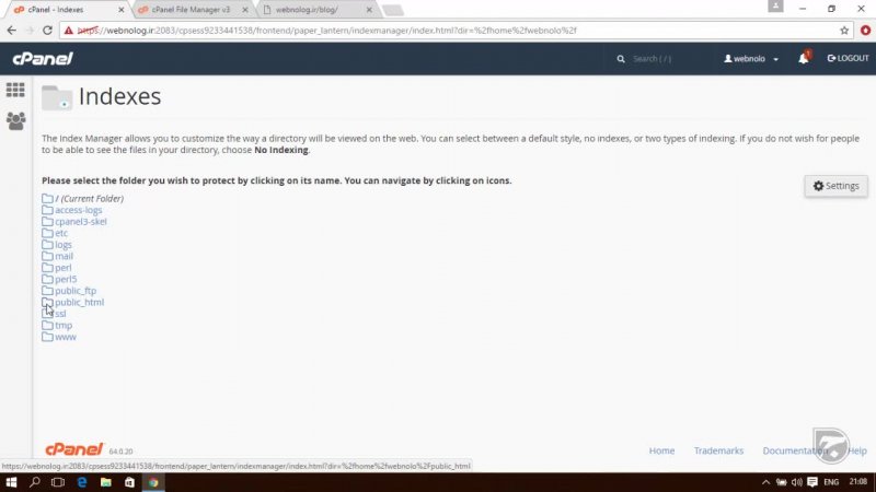 زمانی که بازدید کنندگان یک پوشه ای را درون مرورگر باز می کنند که حاوی پرونده پیش فرض یا همان Index نیست رفتاری که وب سرور از خود نشان می دهد و درون مرورگر بازدید کنندگان به نمایش می گذارد را از بخش Indexes در سی پنل می توانیم تعیین کنیم.