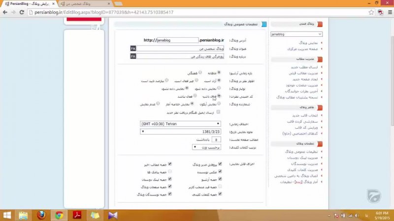 هر وبلاگی دارای بخش تنظیمات است. در وبلاگ های پرشین بلاگ هم این تنظیمات وجود دارد و ما دراین ویدیو به صورت مفصل راجع به این تنظیمات توضیحات کامله را خواهیم داد.