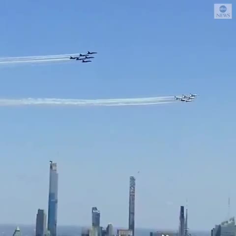 امروز در نیویورک کانون شیوع کرونادرآمریکا ادای احترام هواپیماهای نظامی نیروی دریایی و نیروی هوایی به کادر درمانی