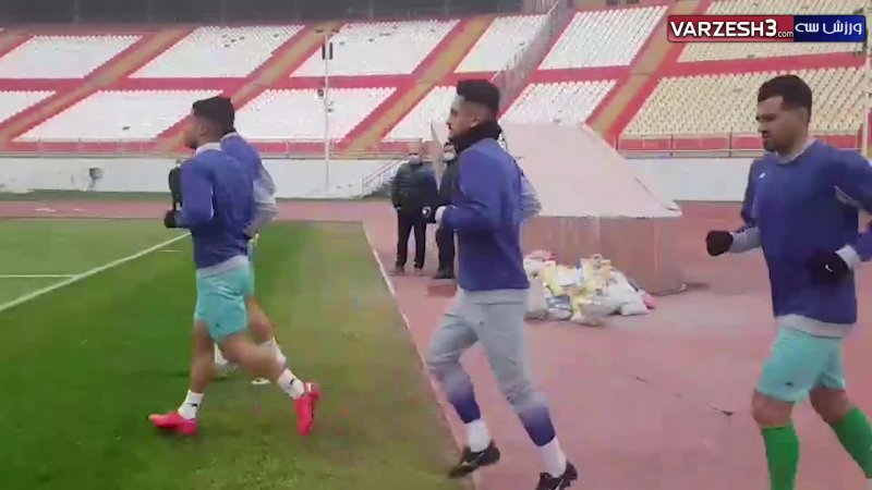 ورود بازیکنان ماشین و تراکتور به زمین ورزشگاه یادگار امام