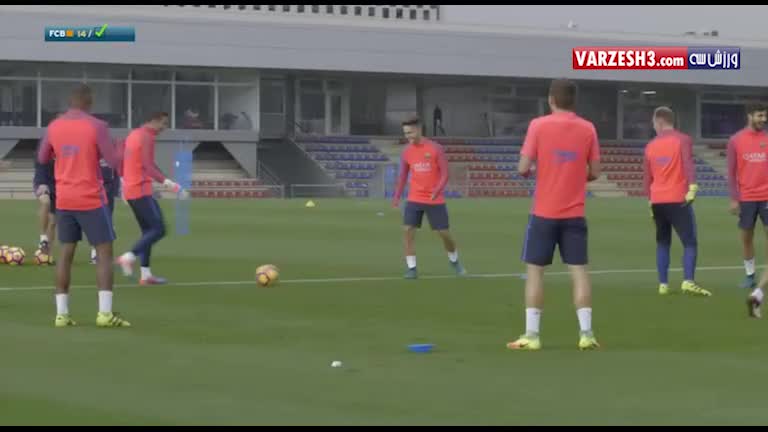 تیکی تاکای حرفه ای بازیکنان بارسلونا در تمرینات