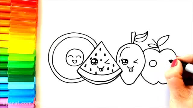 آموزش نقاشی کودکانه بسیار زیبا _ نقاشی میوه های خوشمزه