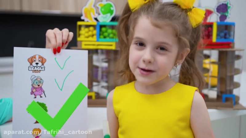 مادر بچه ها را یاد می گیرد و با استفاده از فهرست کارهایی که انجام می دهد شیرینی بازی می کند