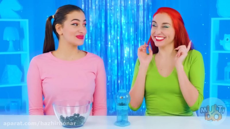 چالش و موقعیت های خنده دار غذایی آبی در برابر صورتی سرگرمی بانوان