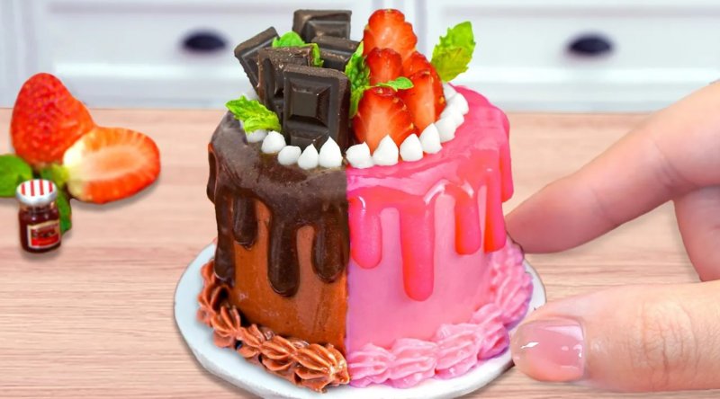 فیلم آشپزی مینیاتوری جدید انواع کیک خامه ای خوشمزه با شکلات - توت فرنگی و ...