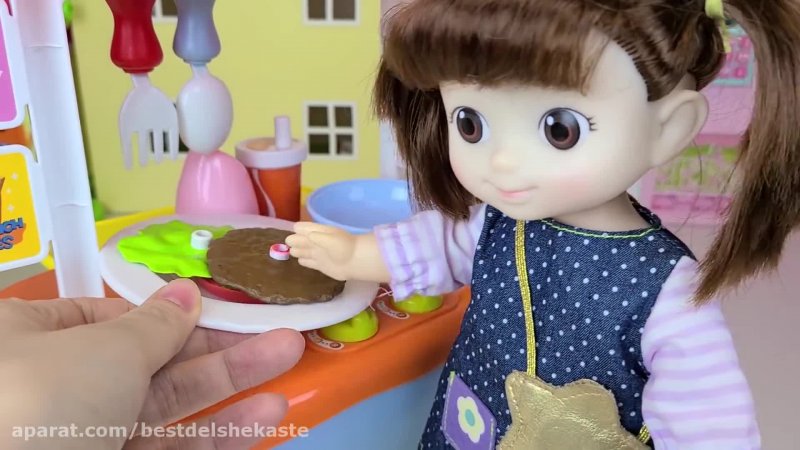 عروسک کودک آشپزخانه آشپزی و اسباب بازی های چرخ دستی غذا بازی داستان خانه - ToyMong TV 토이몽