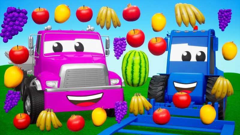 کارتون شهر ماشین های سنگین ساخت و ساز + یادگیری انواع میوه ها