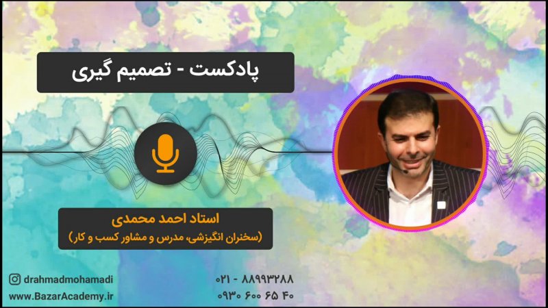 سرنوشت و آینده هر کس در گرو «تصمیمات» و «انتخاب هایشان» است. برای هر چه که به سعادت، آینده و زندگی ات مربوط می شود عجله نکن، با تامل و آرامش برایش وقت بگذار تا از تصمیمت پشیمان نشوی. هیچکس خالی از اشتباه نیست اما با کمی دقت بیشتر در تصمیمات می توان کمتر دچار اشتباه شد. برای اطلاع از سمینارها و محصولات موفقیت، انگیزشی و توسعه کسب و کار یا مشاوره به وب سایت آکادمی بازار(مرجع موفقیت ایران) BazarAcademy.ir ، اینستاگرام drahmadmohamadi@ مراجعه کرده یا با شماره ۸۸۹۹۳۲۸۸-۰۲۱ تماس بگیرید.
