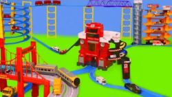 ایستگاه آتش نشانی قطار آمبولانس ماشین های پلیس بیل مکانیکی و وسایل نقلیه اسباب بازی برای کودکان