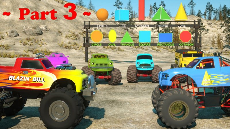 Learn Shapes And Race Monster Trucks - TOYS (Part 3) _ Videos For Children