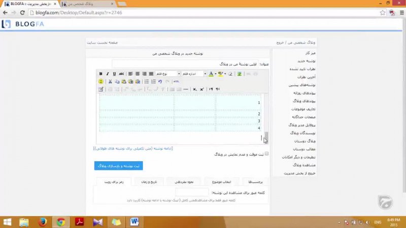 در این ویدیو که در ادامه قسمت قبلی ارسال نوشته جدید در بلاگفا است شما با ابزارهای دیگر صفحه ارسال نوشته جدید در بلاگفا آشنا خواهید شد که برای ویرایش و سبک بندی نوشته شما مفید خواهد بود. در ادامه با تنظیمات ارسال نوشته هم آشنا می شوید.