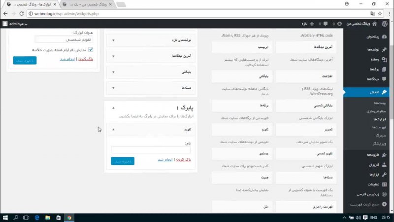 آموزش بخش ابزارک ها در وردپرس که برای افزودن امکانی به سایت برای بازدید کنندگان سایت استفاده می گردد.