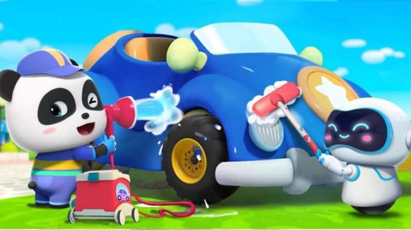 کارتون جدید - ربات کوچولو و پاندا مهربون ماشین را شستند - برنامه کودک