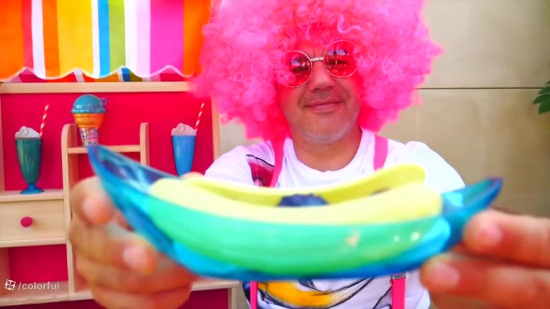 Папа весёлый продавец и Настя смешной покупатель играют в магазин.