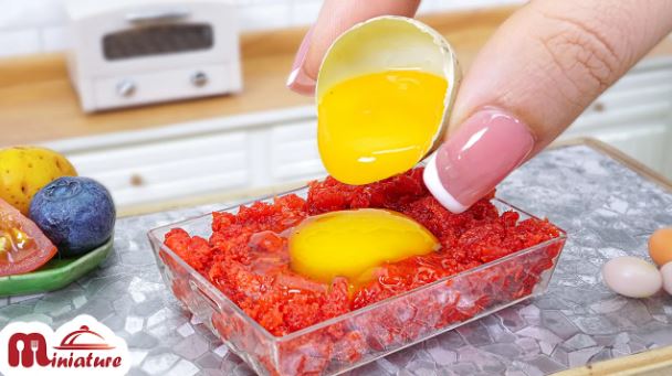 آشپزی مینیاتوری واقعی فست فود - املت گوشت