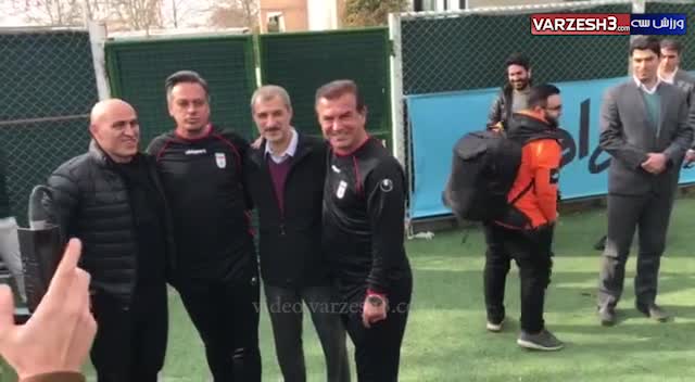 خوش و بش منصوریان با حمید استیلی در مراسم بدرقه تیم ملی امید