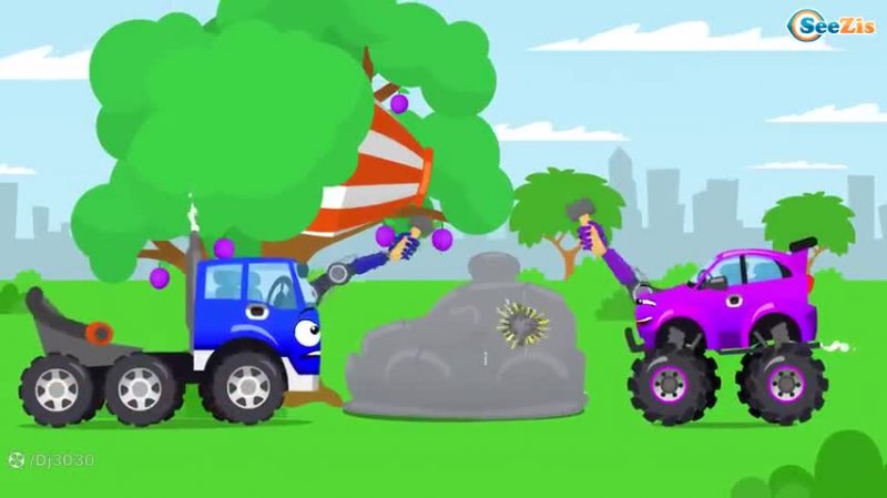 بیل مکانیکی کامیون میکسر سیمان در شهر! وسایل نقلیه ساختمانی با اتومبیل و کامیون برای کودکان.