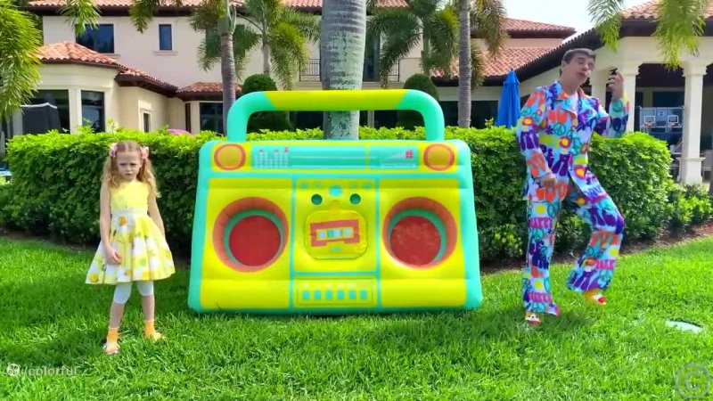 Nastya estava ficando entediado em casa. Nastya sentia falta de amigos. Ela quer ir lá fora. Papai inventou diferentes jogos divertidos e desafiou Nastya. Eles dançam, brincam com tintas de cores diferentes e se divertem muito.