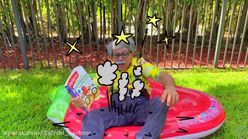 نستیا در خانه با ترامپولین بزرگ کودکان سرگرم می شود