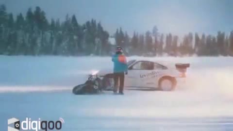 ویدیوی حرکات نمایشی با پورشه، موتورسیکلت و اتومبیل برفی روی یخ جالبه حتما ببینید.