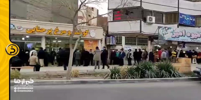 تجمع مردم برای توزیع مرغ در مشهد در بحبوحه شیوع ویروس کرونا