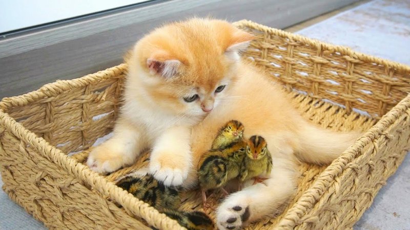 کلیپ احساسی از اولین برخورد بچه گربه با جوجه ها