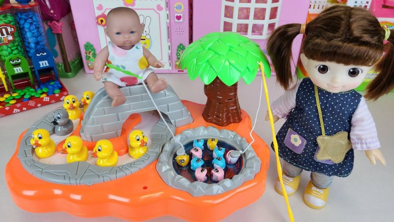 قسمت جدید عروسک بازی دختر کوچولو : ماهی گیری و بازی با جوجه اردک ها